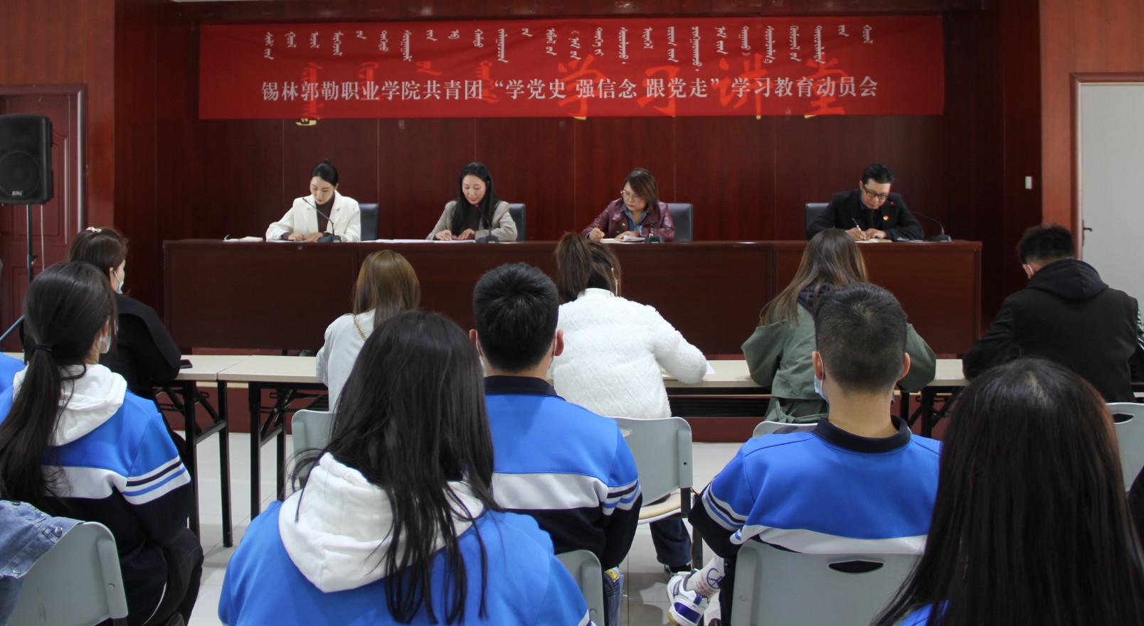 会上付泓瑶传达学习了贺军科同志在共青团“学党史、强信念、跟党走”学习教育动员会上的讲话精神和学院党史学习教育动员会精神,张琪宣读《关于在全院各级团组织和全体共青团员中开展“学党史、强信念、跟党走”学习教育的实施方案》,团委书记乌音嘎同志对开展“学党史、强信念、跟党走”学习教育进行动员部署。