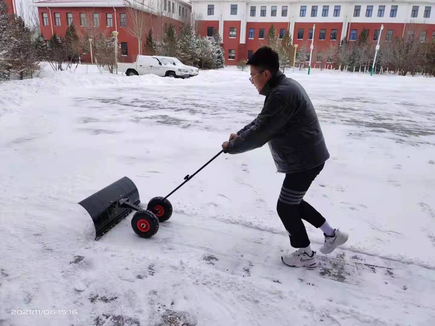 活动中团总支书记张刚老师带领同学们对校园内的积雪进行清扫,同时对各班级卫生进行清洁和消毒通风,为防控疫情做出贡献。