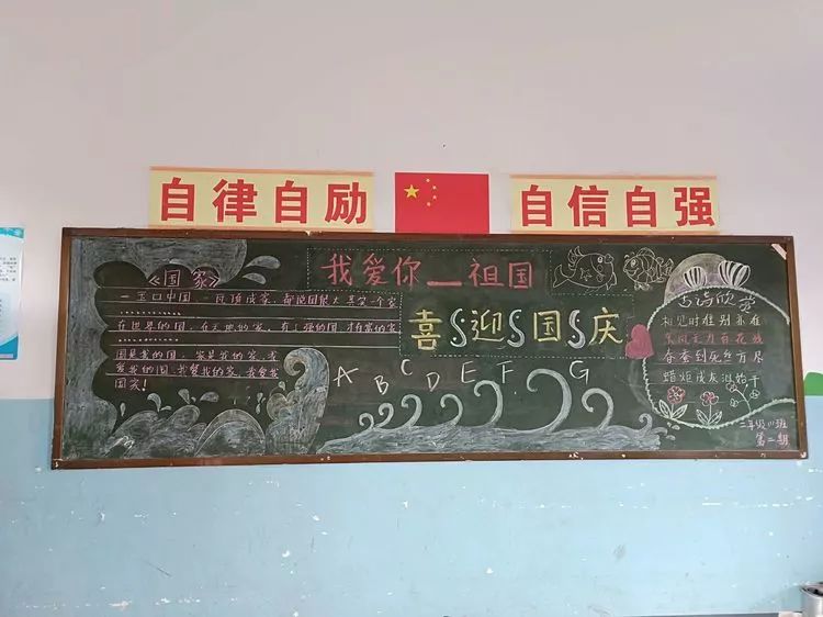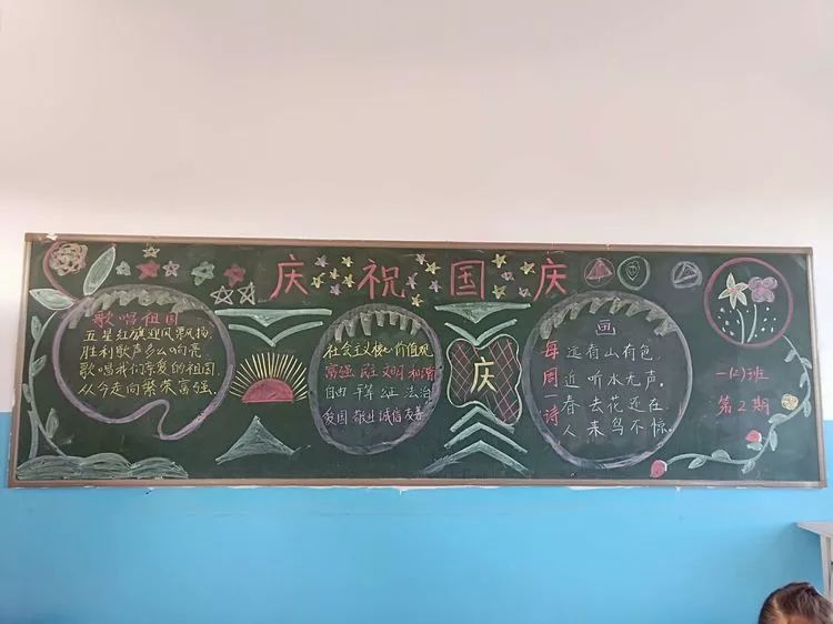 同学们还以黑板报为阵地,图文并茂地抒发了对祖国的祝福和热爱之情。