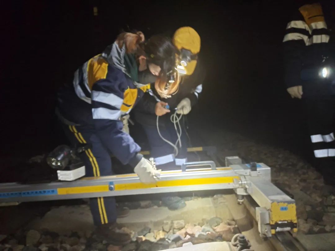 冬季将至,气温走低。凌晨的卓资东站,一队裹得严严实实的姑娘们,在空旷的站场上推着仪器向前走着,头灯闪烁出的寒光,伴随着呼吸出的白气,在深邃的夜空中显得格外亮眼。