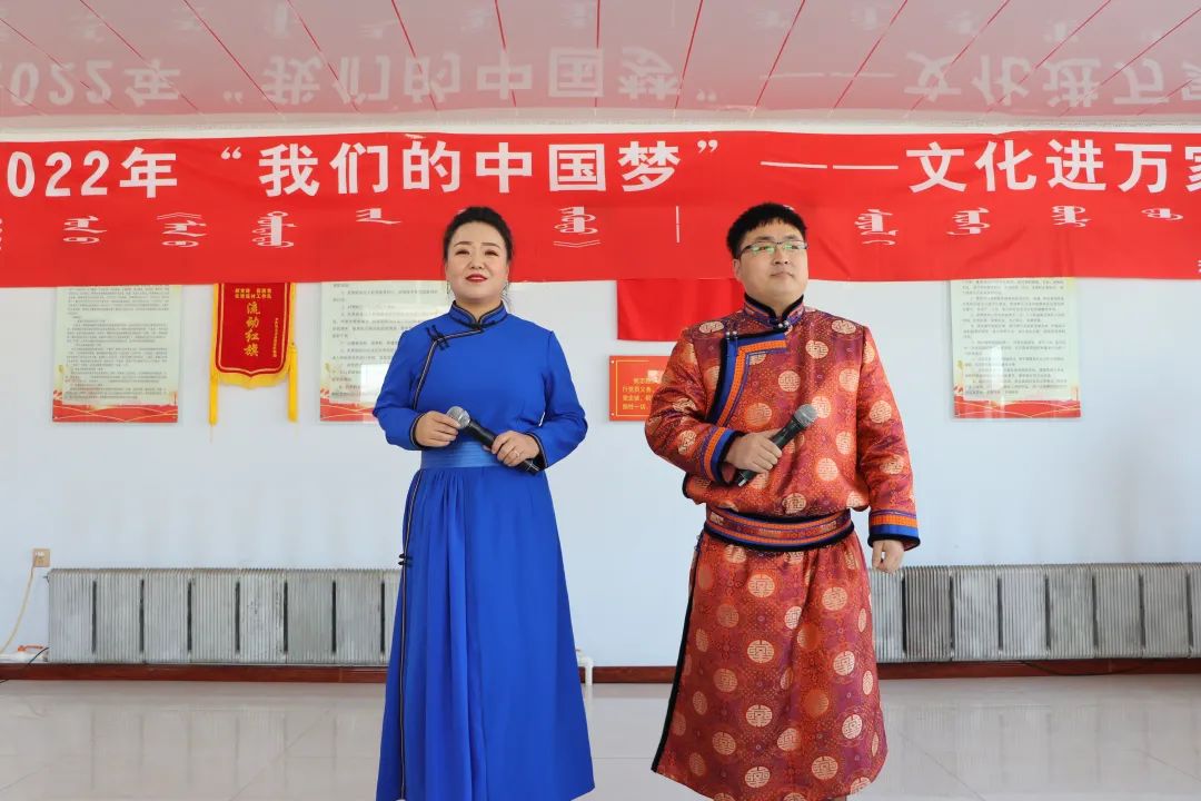 科右前旗乌兰牧骑“我们的中国梦”——文化进万家演出洋溢着欢乐、祥和的节日氛围。舞蹈《白马》《印迹》《维拉特姑娘》,歌曲《骏马奔驰保边疆》《谁不说俺家乡好》《等待》《萨日奈》,马头琴齐奏《奔腾》等节目精彩上演。演员们个个精神饱满,载歌载舞,通过文艺演出的形式和群众们零距离互动,把关怀和欢乐送到他们身边,得到了群众的赞扬和喜爱。
