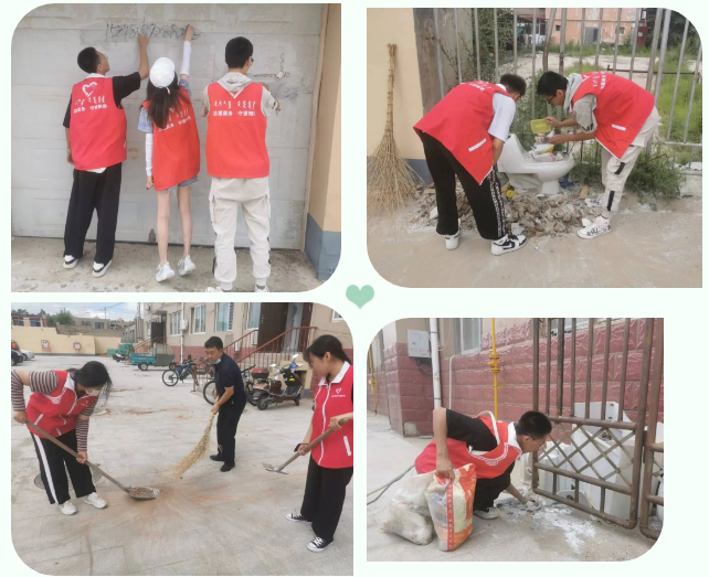 志愿者们带着铁锹、扫把、刷子、清洁剂等,对小区路面进行全面清扫,并对小区的单元门以及沿街外墙小广告进行清理,经过一上午的不懈努力,小区环境的得到了改善。