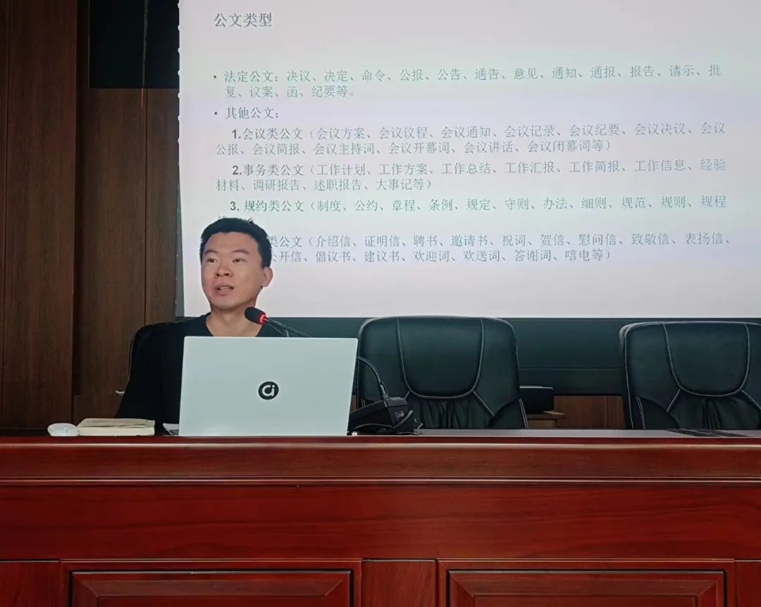上午,邀请全盟青年讲师团成员、旗委党校教研室主任牛淑慧同志讲授党的二十大精神,牛老师以“向着中华民族伟大复兴负重前行——党的二十大精神解读”为题,从深刻把握党的二十大的重大意义、主题、伟大变革、使命任务等方面,对党的二十大精神作了全面系统、深入浅出的宣讲,用摆事实、讲道理,说感悟、谈体会的方式帮助大家深化对党的二十大精神的理解。还邀请旗人民政府办公室四级主任科员杜帅同志为大家讲授公文写作知识,以“党政公文写作格式与范例”为题,结合自身工作经历,对公文概念、种类、格式、行文规则等内容分享了公文写作的基础知识和经验心得,既有知识分享,又有实例示范,使在座的各位对公文规范化写作、处理有了更全面的认识。