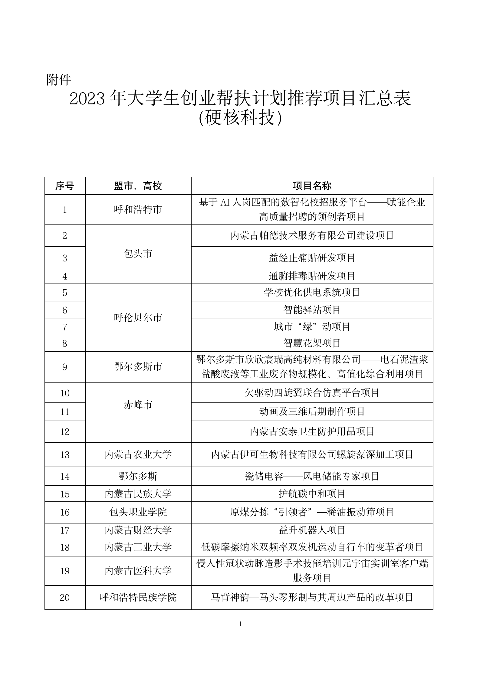 2023年大学生创业帮扶计划推荐项目汇总表 (硬核科技)