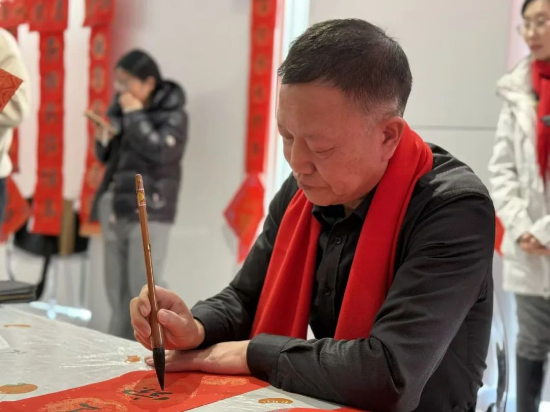 书法爱好者挥毫泼墨,将新春的祝福融于笔端,饱含祝福的字句带着浓浓的年味跃然纸上,喜迎新春佳节。