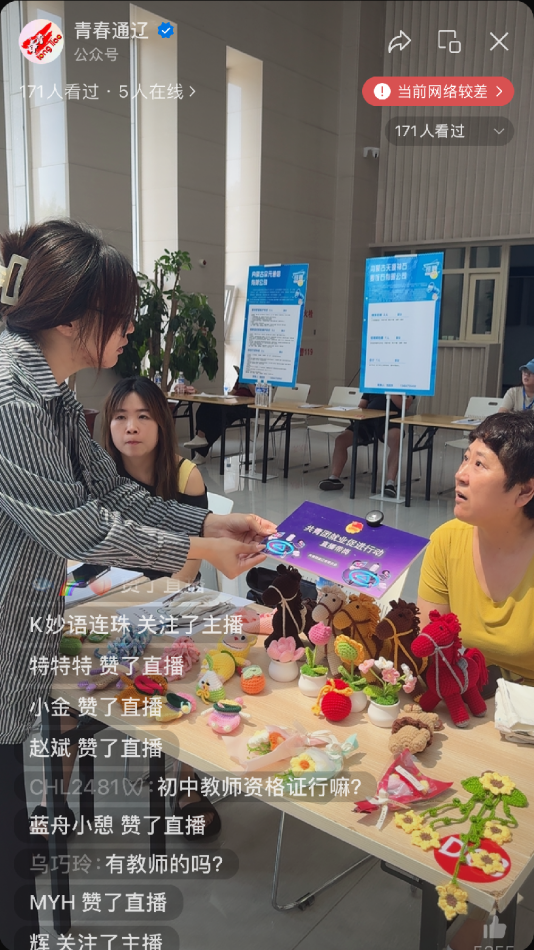 活动期间,共青团通辽市委员会转变服务形式,依托“青春通辽”视频号开展共青团“就业促进•直播带岗”活动。团市委工作人员化身“就业推荐官”,以青年视角解读企业招聘需求,围绕岗位发展前景、薪酬福利体系、人才培养路径等青年关注的核心问题展开详细介绍。直播过程中,“推荐官”实时与343名在线观众互动答疑,针对职业规划、技能提升等高频问题进行专业指导,收获点赞量1.1万次,让无法亲临现场的青年也能“云端”掌握优质岗位信息。