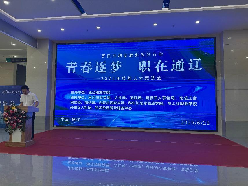 为深入贯彻落实习近平总书记对内蒙古的重要指示精神,全力推动自治区党委、市委“六个行动”落地见效,6月25日,由通辽职业学院、共青团通辽市委员会等13家单位联合举办的2025年通辽市“百日冲刺促就业”系列行动之技能人才双选会,在通辽职业学院圆满收官。