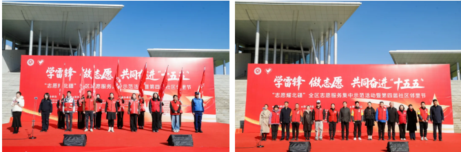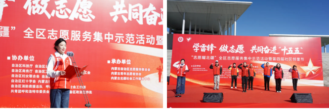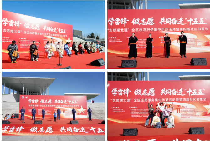 各厅局有关负责同志共同为全区志愿服务集中示范活动暨第四届学雷锋社区邻里节志愿服务队授旗,并为各领域志愿者代表佩戴学雷锋徽章。青年志愿者们齐声高唱《学习雷锋好榜样》,激励广大青年志愿者在新时代内蒙古新征程中续写青春华章。