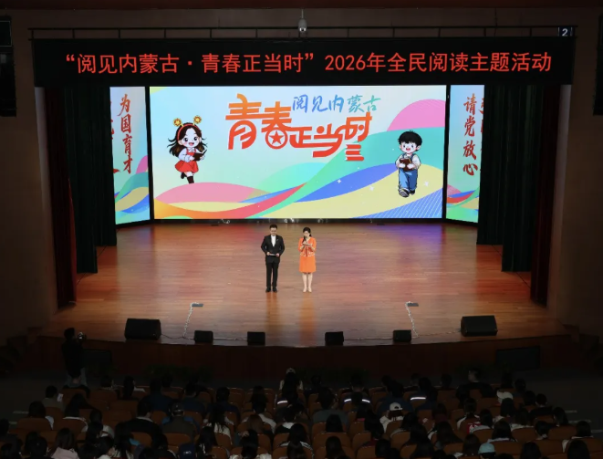 “名篇佳作寻宝记” 带领青少年沉浸式探寻优秀传统文化,“红领巾爱阅读” 读书漂流、博物馆研学活动,让少先队员在书香中传承文脉。主会场演艺厅内,情景舞台剧《阅读之美》生动展现阅读的美好与力量,朗诵《以书为翼 瞰我大国国防》抒发青少年的爱国情怀与担当。文化名人大柠围绕青年与阅读开展主题宣讲,引导青年以阅读涵养初心、增长才干。原创歌曲《奋斗的内蒙古青年》激情唱响,展现内蒙古青年昂扬向上的精神风貌。在《习近平与大学生朋友们》图书分享环节,内蒙古大学师生代表结合亲身经历与读书感悟,传递“志存高远、脚踏实地、行循自然” 的青春教诲,引发现场强烈共鸣。