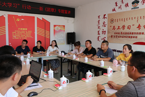 为深入学习贯彻习近平新时代中国特色社会主义思想、党的十九大精神和团的十八大精神,不断将全团开展的“青年大学习”行动引向深入,把团的新政策、新理论及时传播到广大青年身边去,近日,团旗委宣讲团一行4人,赶赴上海庙经济开发区、上海庙镇、城川镇等基层团委宣讲《团章》修正案。