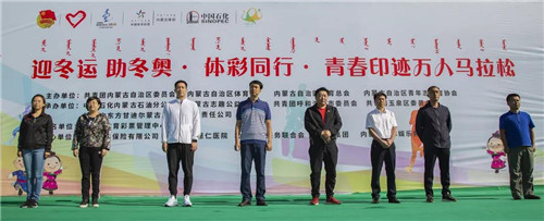 为庆祝中华人民共和国成立70周年,以习近平新时代中国特色社会主义思想为指引,在全区营造广大青年助力全国第十四届冬季运动会,喜迎2022年北京冬奥会的浓厚氛围,展示我区青年在各个领域助力亮丽内蒙古建设的良好风貌,自治区团委、自治区体育局、内蒙古青年志愿者协会、内蒙古体彩中心联合举办“迎冬运 助冬奥,青春印迹公益主题系列活动”。“青春印迹·万人马拉松”作为第四场主题活动于8月17日在呼和浩特举行。自全市各企事业单位、高校、社会组织、俱乐部近3000多名马拉松健身爱好者集结一起,手拿国旗,欢快的舞动,以全民健身的方式表达对新中国70华诞的祝福和营造迎冬运、助冬奥的浓浓氛围。