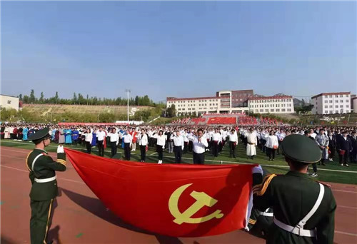 在喜迎中华人民共和国成立70周年之际,9月29日上午,自治区团委机关系统全体党员干部和全校师生隆重集会,共同举办“不忘初心 牢记使命”庆祝新中国成立70周年主题党团日活动,表达爱党爱国爱社会主义的情怀和不忘初心、牢记使命的信心决心,献上对祖国的深情祝福。