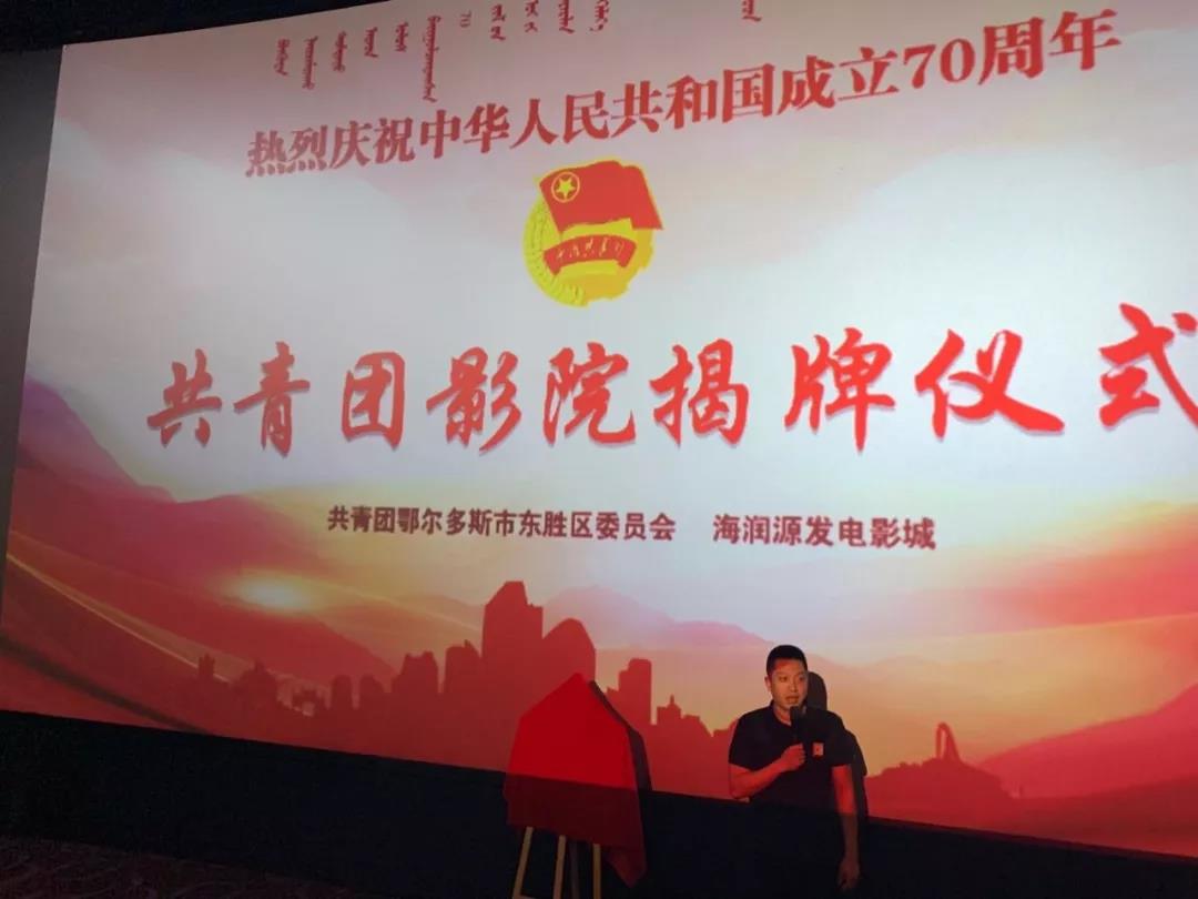9月30日下午,在海润源发电影城举行了“共青团影院”揭牌仪式暨庆祝中华人民共和国成立70周年公益观影活动,东胜区首家青年人自己的影院正式上线。来自东胜区各基层团组织的团员青年代表100余人到场参加了活动,现场气氛分外活跃。![]()