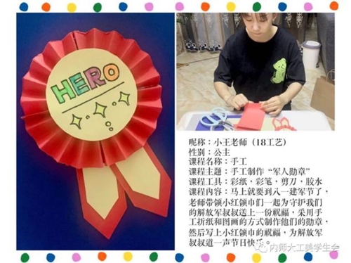 此次活动采取网络课程录播或线上一对一等方式近距离走进同学们的假期生活。工艺美术学院共派出70名志愿者,围绕美育教育,发挥专业特长,以一人一课的形式,录制70门美术课程,涵盖手工,书法,美术,电脑绘图,民族扎染等方面,通过微信公众号共推出5期,累计帮扶200多名学生。志愿服务时长达到260余小时。